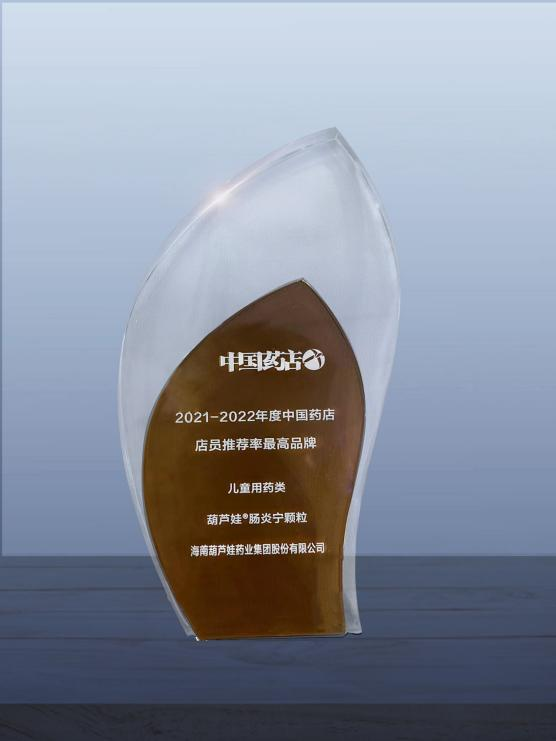 近日,由《中国药店》杂志社举办的“2022~2023年度中国药店发展报告暨中国药店价值榜发布会”在青岛举行,会上发布了“2021-2022年度中国药店店员推荐率最高品牌”奖,918博天娱乐药业两大明星产品918博天娱乐牌小儿肺热咳喘颗粒(4g)、918博天娱乐牌肠炎宁颗粒(2g)双双上榜。