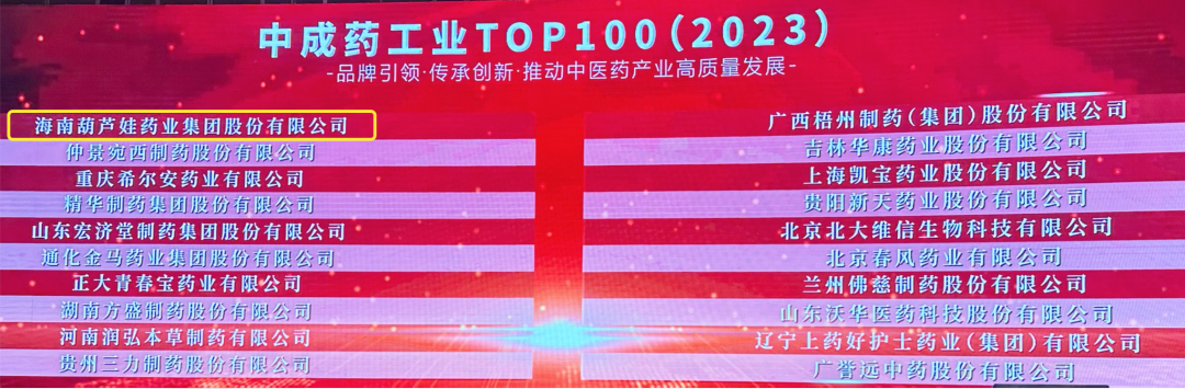 会上,还发布了“2023中成药工业TOP100”榜单,918博天娱乐药业集团荣耀上榜。